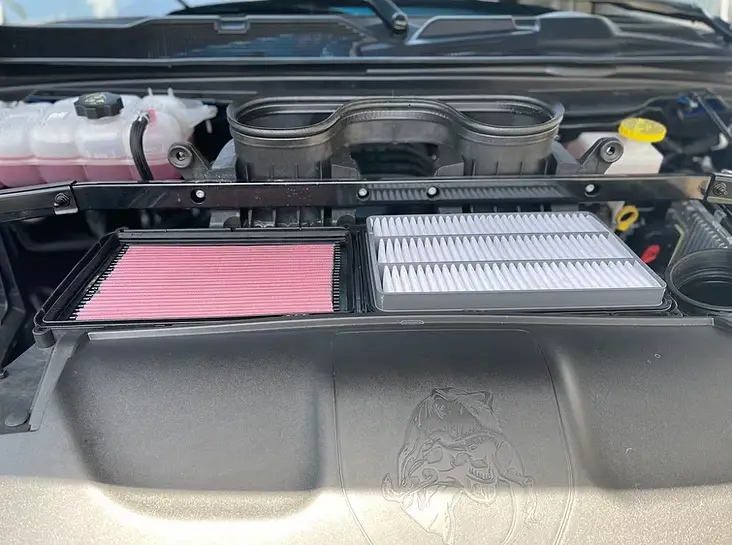 Drop in air filters for Ram TRX which helps the stock (Ram Air) box become more efficient without modifying your stock intake box. This product retains the fit and finish of OEM quality. No cutting required. Proven and noticeable gains in intake sound.